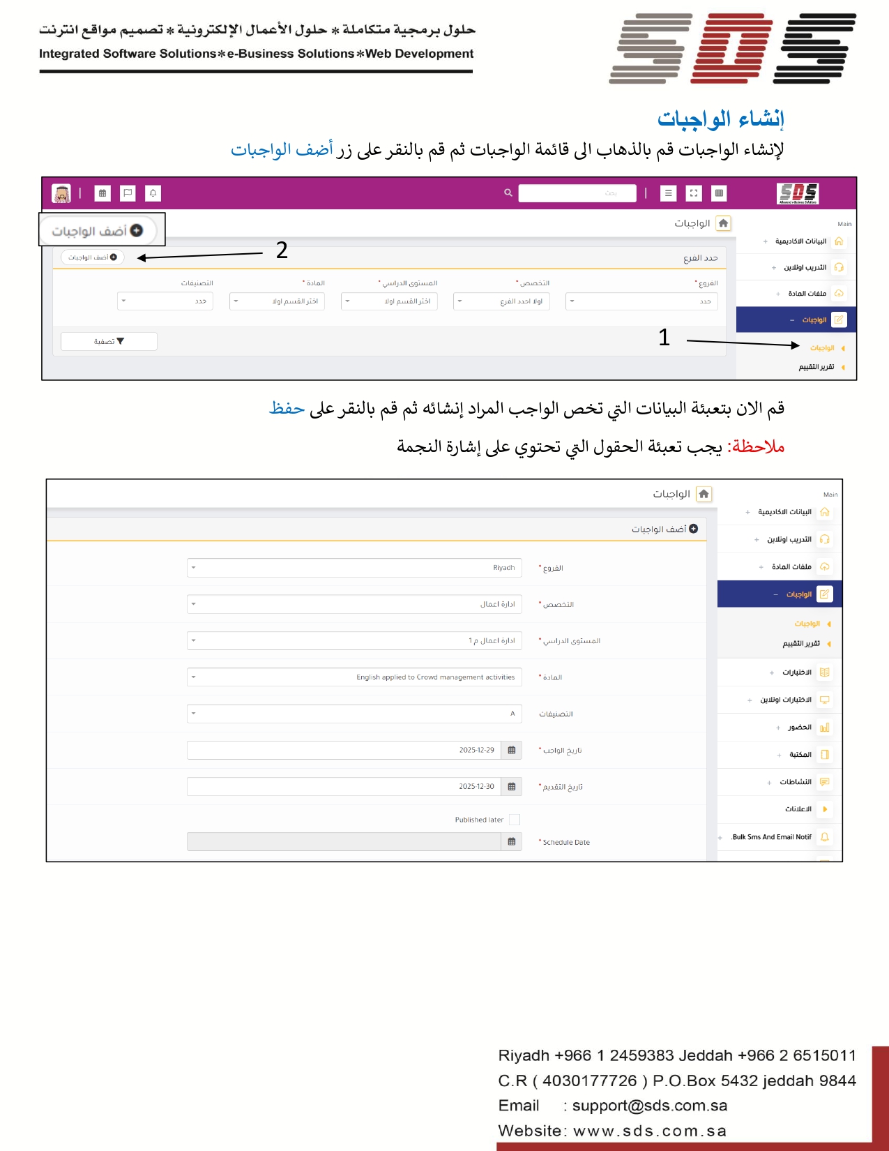 آلية إدارة قسم الواجبات