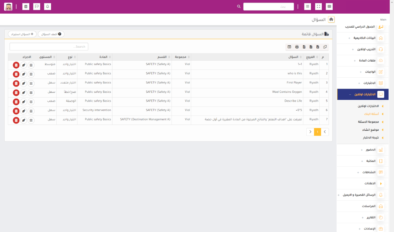 لاضافة اسالة للبنك قم بتحرير بنك الاسئلة ومن ثم قم بكتابة الاسئلة المراد اضافتها ثم قم بالحفظ